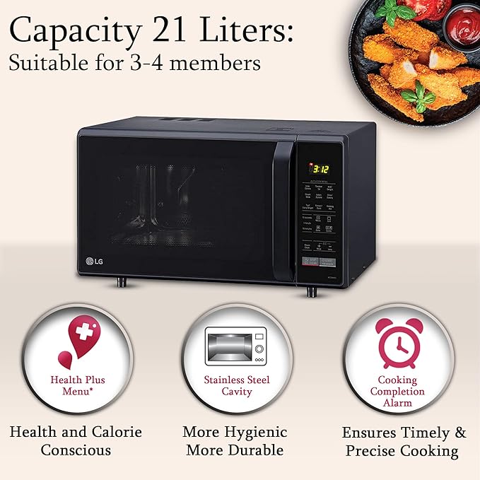 Additional Features: Timed cooking, defrost, programmable settings, timer, rotating turntable, energy-saving mode, and dehumidification function to refresh soggy foods like biscuits, chips, and namkeens, making them crisp again.
